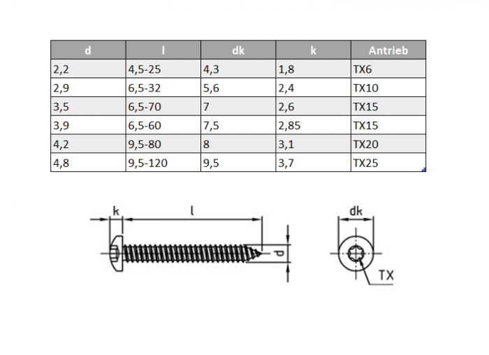 Blechschrauben Linsenkopf Edelstahl VA DIN 7981 ISO 14585 TORX A2