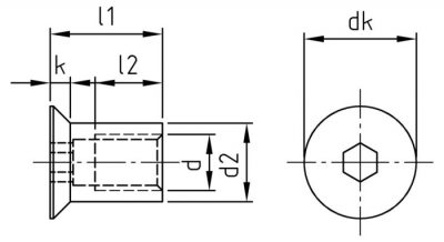 | d | d2 | l1 | l2 | dk | k | Antrieb |