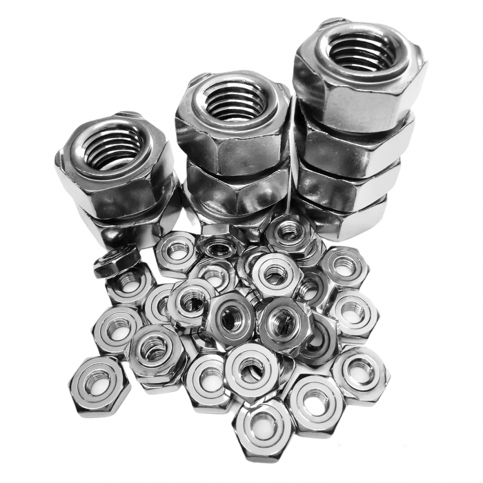 Schweißmutter VA DIN 929, Sechskantmutter aus Edelstahl, erhältlich in den Größen M3, M4, M5, M6, M8, M10, M12. Diese Mutter eignet sich perfekt für das Schweißen und bietet eine hohe Korrosionsbeständigkeit. Ideal für den Maschinenbau, Fahrzeugbau und Bauindustrie.