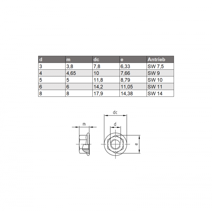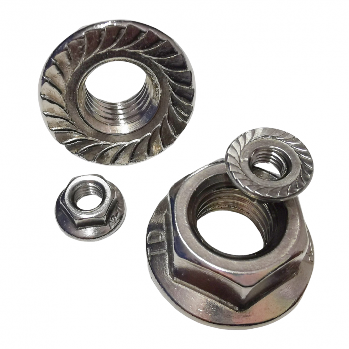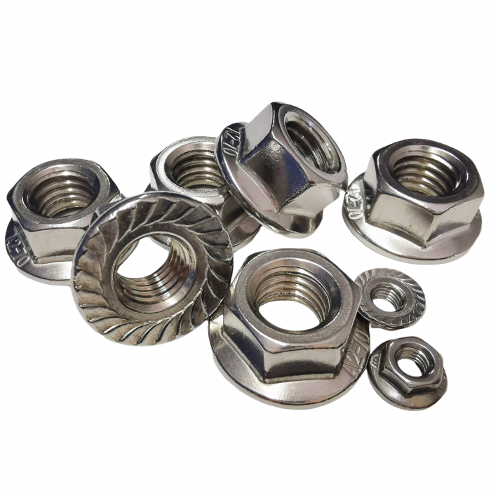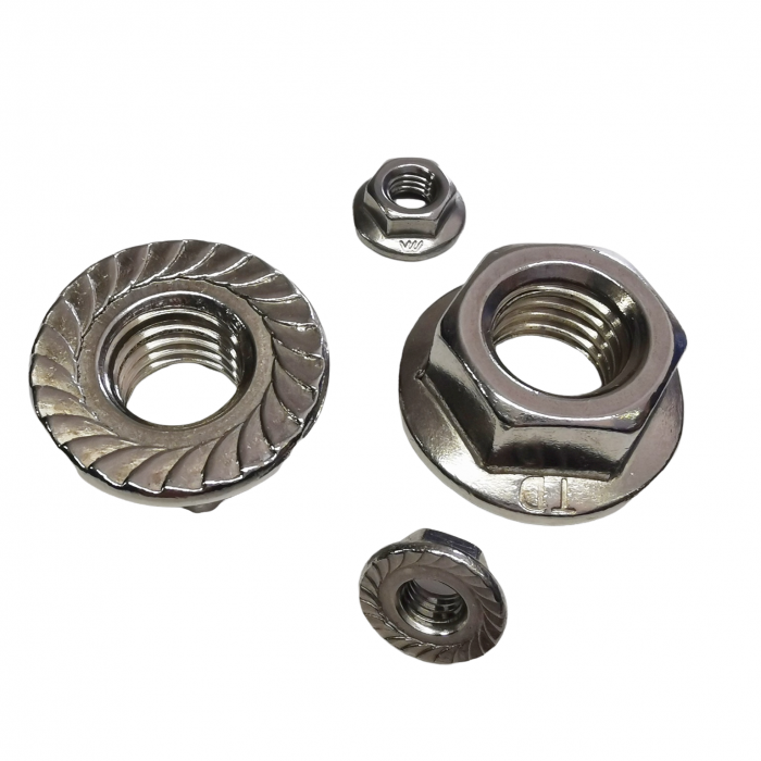 Sechskantmuttern mit Flansch und Sperrverzahnung DIN 6923 Edelstahl A2 V2A