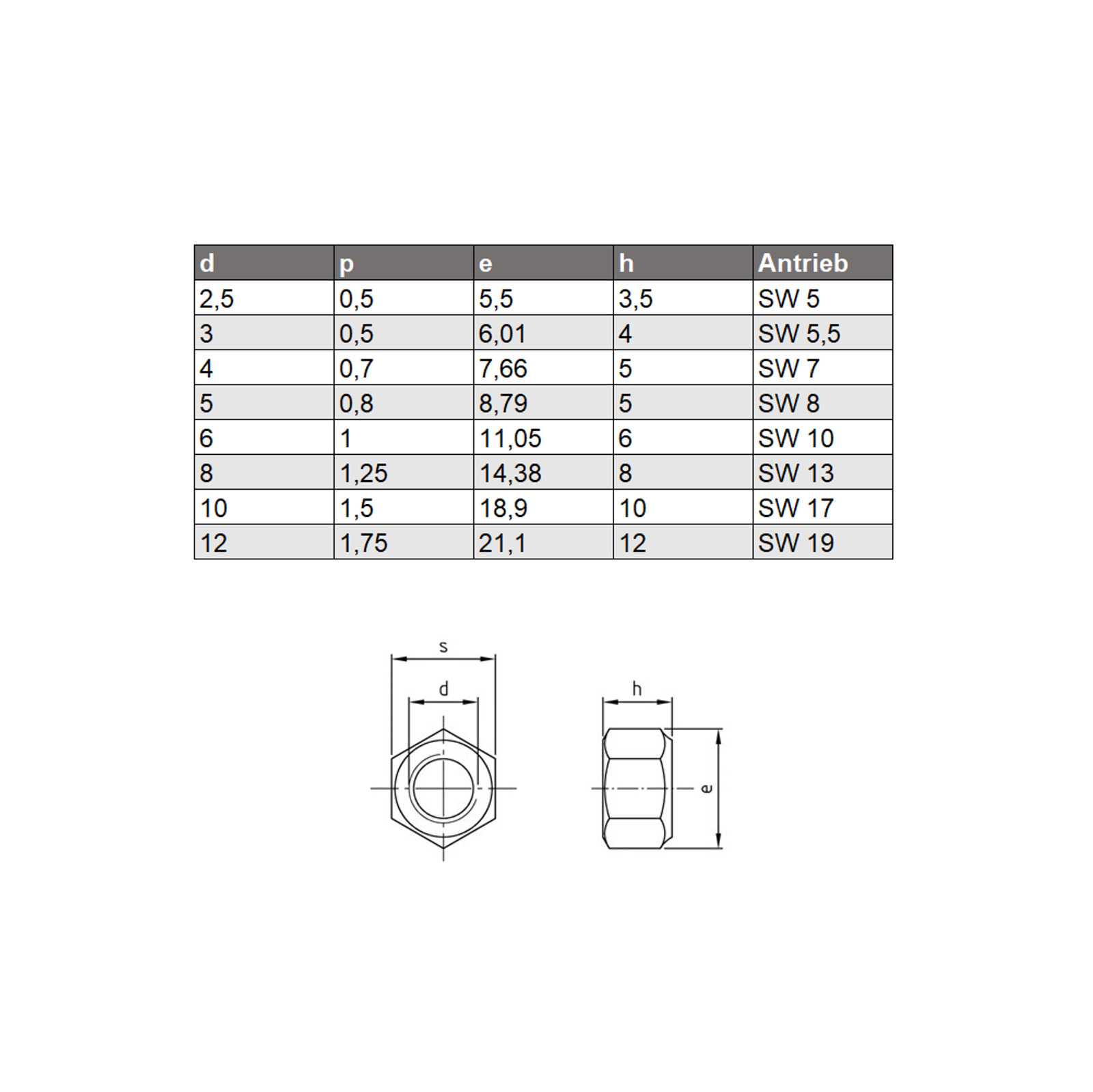 | Durchmesser | M2,5, M3, M4, M5, M6, M8, M10, M12 |