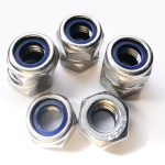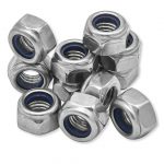Sicherungsmuttern Edelstahl V2A DIN 985, in den Größen M5 bis M12. Mit Sicherungselement gegen das Lösen. Ideal für den Außenbereich und feuchte Umgebungen.