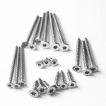 Spanplattenschrauben Edelstahl VA 9047 mit TORX-Antrieb, Durchmesser 3–4,5 mm, Vollgewinde. Ideal für den Holzbau, Möbelbau und Innenausbau. Der TORX-Antrieb sorgt für eine optimale Kraftübertragung und verhindert ein Abrutschen des Werkzeugs. Das Vollgewinde ermöglicht eine besonders feste Verbindung in Holzmaterialien. Hergestellt aus rostfreiem Edelstahl VA für hohe Korrosionsbeständigkeit und langlebige Stabilität – perfekt für Anwendungen im Innen- und Außenbereich.